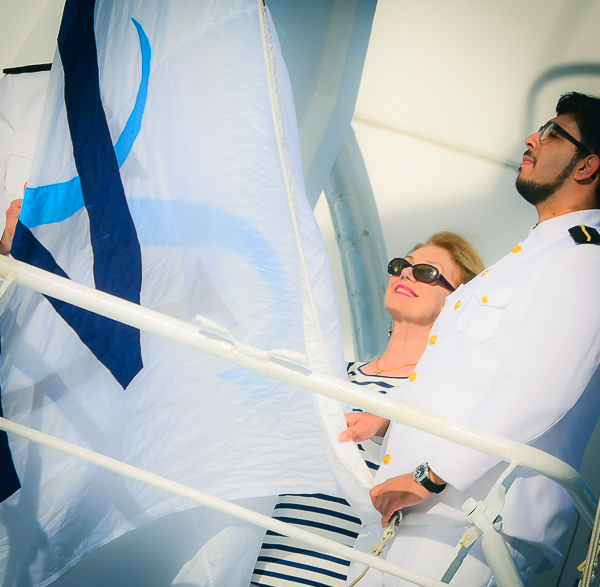 Travel industry and women’s business icon Gloria Bohan climbed the mast along with the able-bodied seamen who normally perform the Windstar flag-raising ceremony.