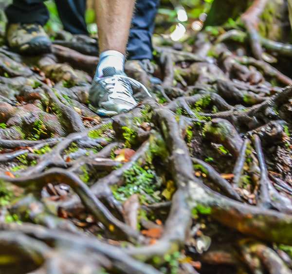 More accurately, we enjoyed a walk in the lush, thick jungle.  Initially reminiscent of Jamaica’s Ferngully rainforest, the Malaysian version stretches the definition of ‘trail’ about as far as it could. Cautious ‘one wrong step and you’re dead’ footing required.