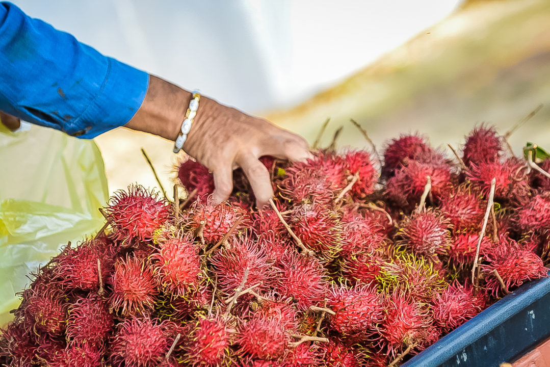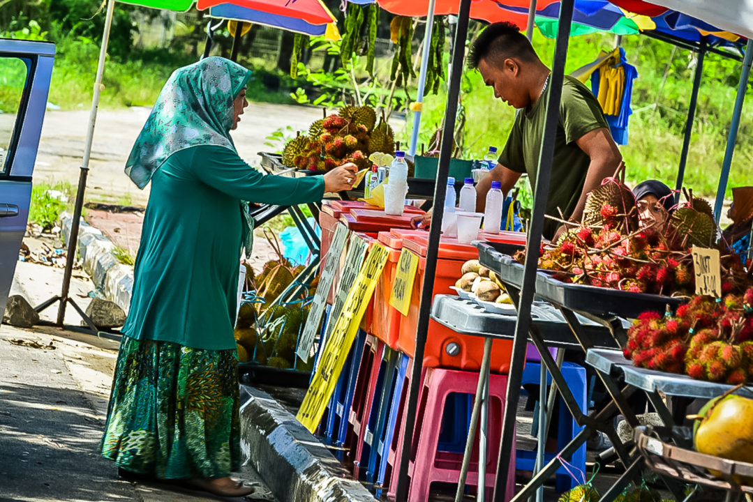 Stopping at a streetside market while touring Brunei.