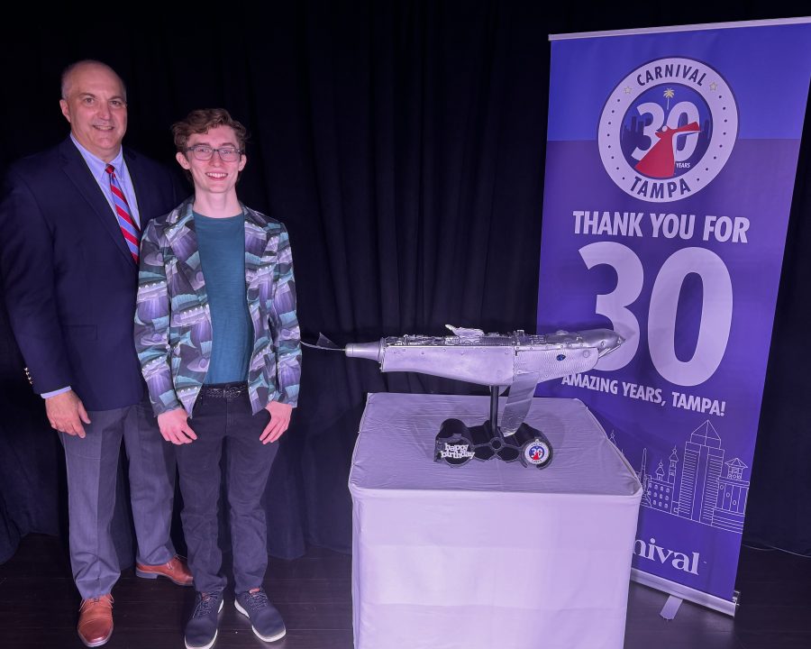 Carnival also marked the special day by revealing a new sculpture created by 16-year-old Tampa artist and conservationist Ryan Moralevitz from discarded materials he’s picked up at local cleanups to raise awareness of the importance of protecting Tampa’s oceans and beaches.