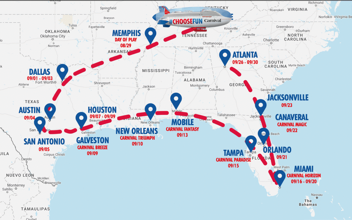Carnival is America’s Cruise Line and what better way to showcase our new offerings in popular homeports like Galveston, Port Canaveral and Miami than with our very own AirShip that highlights our #ChooseFun tagline while supporting the special kids at St. Jude Children’s Research Hospital -Christine Duffy, president of Carnival Cruise Line.