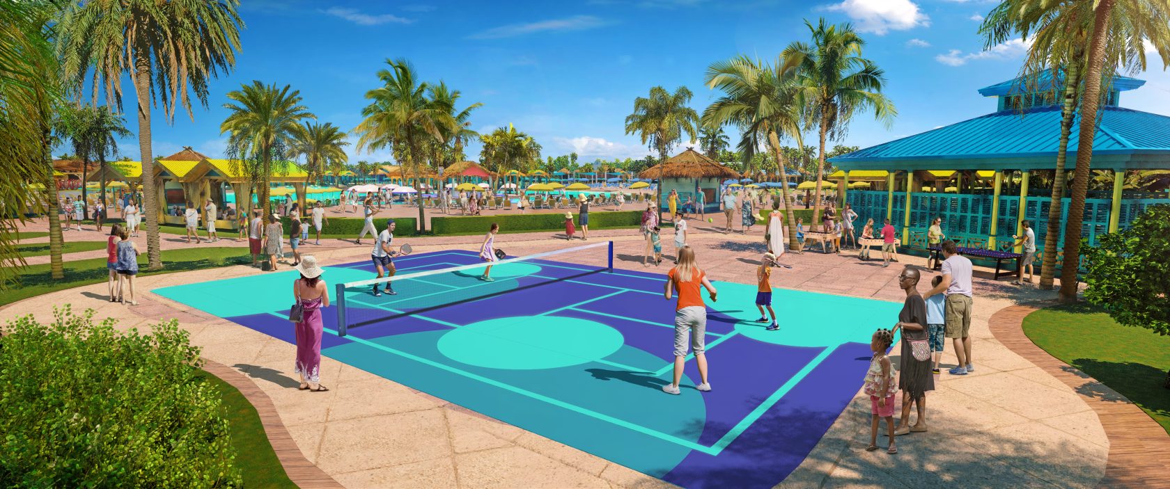 - The Sports Court includes volleyball, basketball and pickleball courts adjacent to the Game Pavilion.