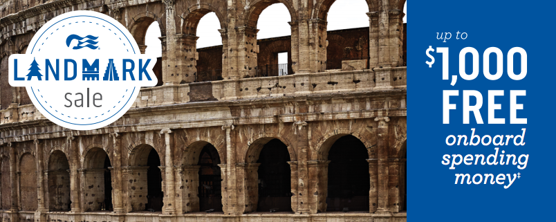 For one day only, you can book a cruise with only a $1 deposit and also receive Up to $1,000 FREE Onboard Spending Money‡ under the Landmark Sale. I like the simple rules: