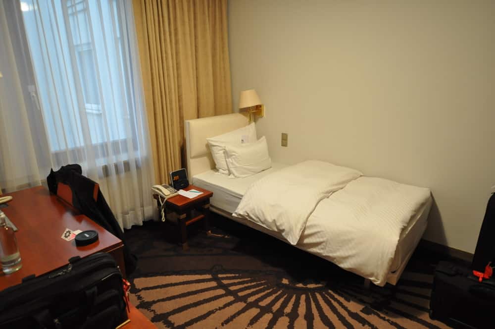 A good night’s sleep prepared us for embarkation day and the beginning of our Viking River Cruise, themed to include stopping at Christmas markets along the way but with a core experience of Viking’s Romantic Danube itinerary, available at other times of the year as well. Shown here, a standard double room at the Grand Meridien Hotel that I saw on a tour of the hotel. We did not have one of those. Selling out far in advance, the only option we had were two single rooms which were nicely appointed but made for an odd sleeping arrangement.