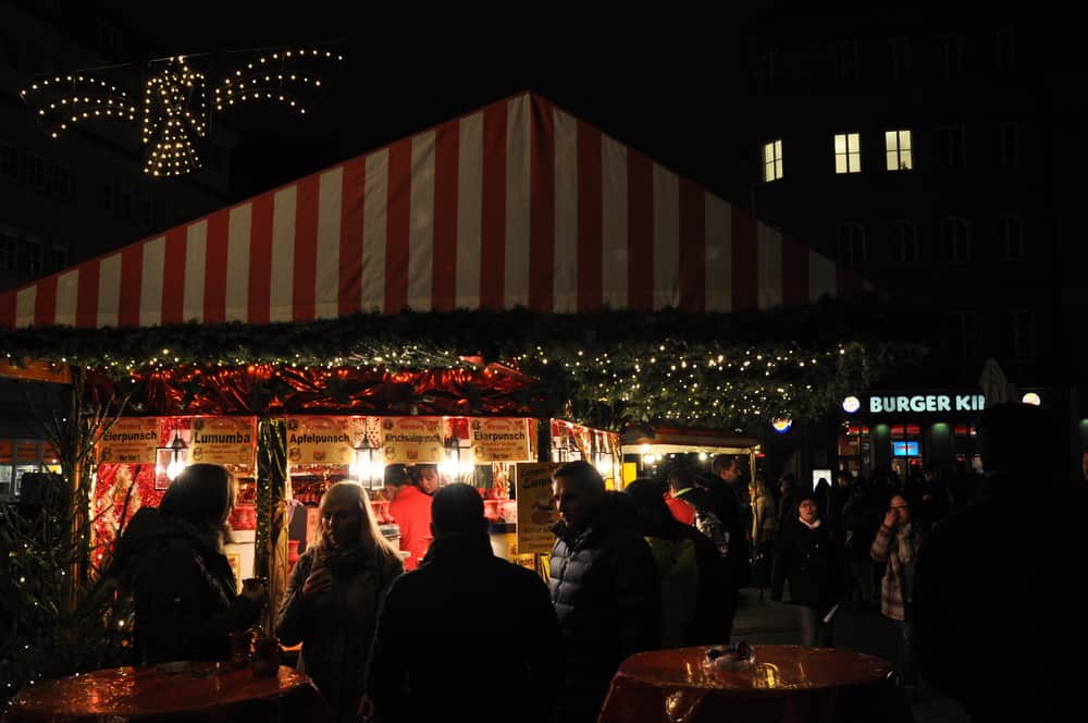 Returning to that same Christmas market at night brought an entirely different experience as colder weather caused more Gluhwein consumption and the crowd thickened. As the business day came to and end, the market became busier and brought some great memories of window shopping, pretzels and more.