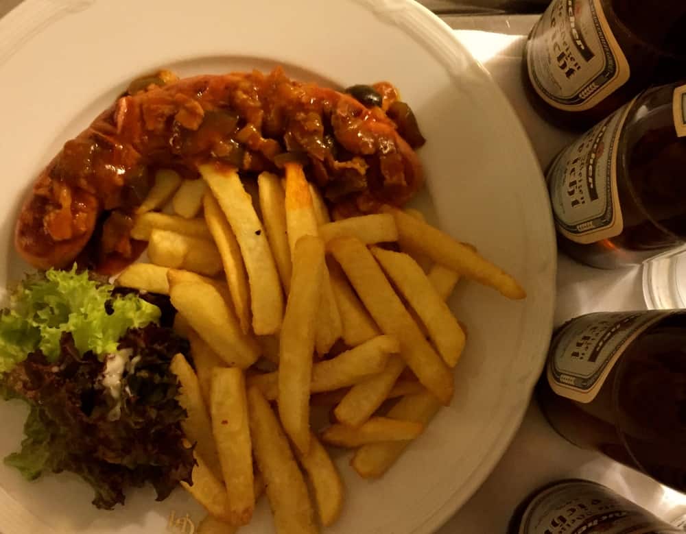 We also tried Currywurst, a version of Bratwurst first sampled visiting Cologne earlier in the year, traveling with Abercrombie & Kent. This something I never would have tried had it not been for the recommendation of our friend Joey, a Viking Program Director met last year on our first Christmas markets sailing. I think the hotel added french fries to Americanize the dish. I suspect that German potato salad could have been substituted if requested.