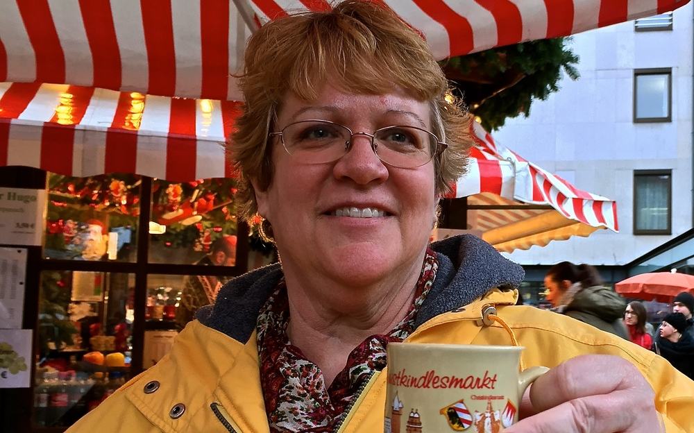 The first stop after dropping our bags at the Meridien Grand Hotel was the Christmas market and, more importantly, the first Gluhwein stand we happened upon. While the hot mulled wine beverage (Viking recipe here) is featured at every market we visited, the collectible cups are unique to each market. Vendors charge a deposit on the colorful mugs (about €3) which they give back if the mug is returned. We never did. At €3, they are a great and inexpensive souvenir.