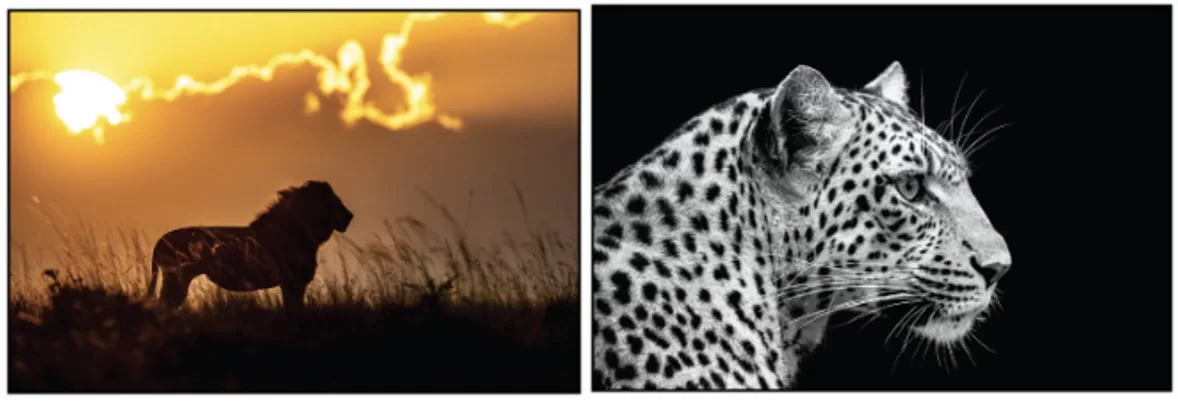 Art aficionados can choose from a collection of striking images of big cats in their natural habitats, being briefly transported to the wilderness. The collection includes glowing scenes, featuring ‘On the Move,’ ‘Auras of Gold’ and ‘Dusk Patrol’. Those who prefer the black and white style can opt for the attention-catching ‘Legadema Portrait’, ‘In Waiting’ or ‘Spotted Embrace’.