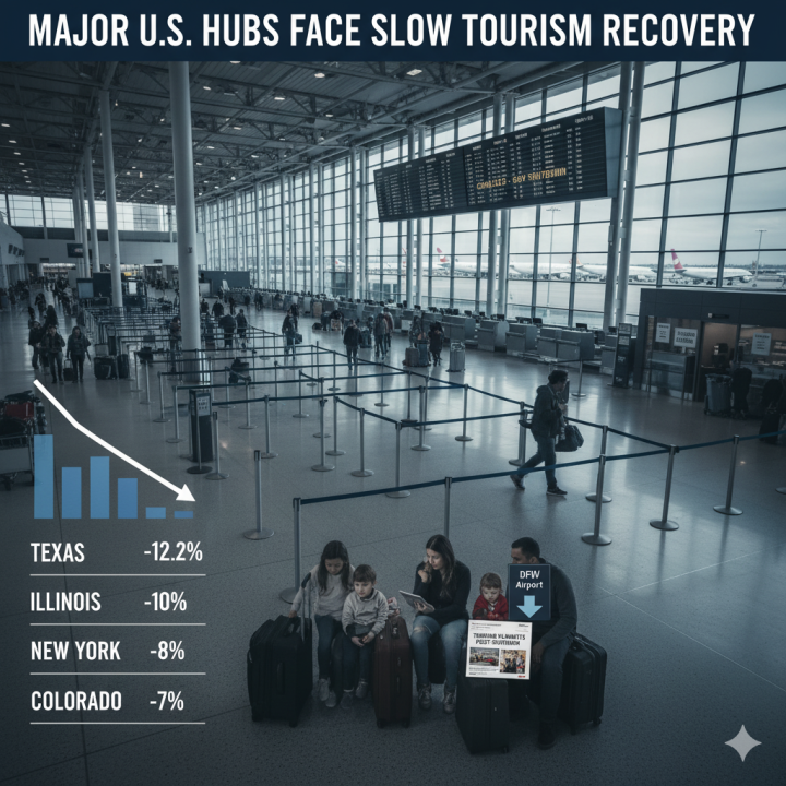 The fallout from the recent federal government shutdown continues to impact the U.S. travel industry, causing a prolonged tourism slump in states vital to the national economy, including Texas, Illinois, Georgia, Colorado, and New York. Although the government has reopened and air traffic controllers have returned to work, the lasting effects of the FAA’s mandated flight reductions and traveler uncertainty are slowing recovery.
