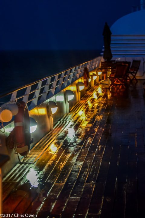 Alex Nuñez traveled aboard Star Legend from Lisbon to Miami in order to create a new mural. The mural is titled “First Light” is inspired by the artist awakening to the sun rising on the horizon while at sea. “The hues of blue envelop the marine life thriving beneath the crashing waves,” Nuñez says.