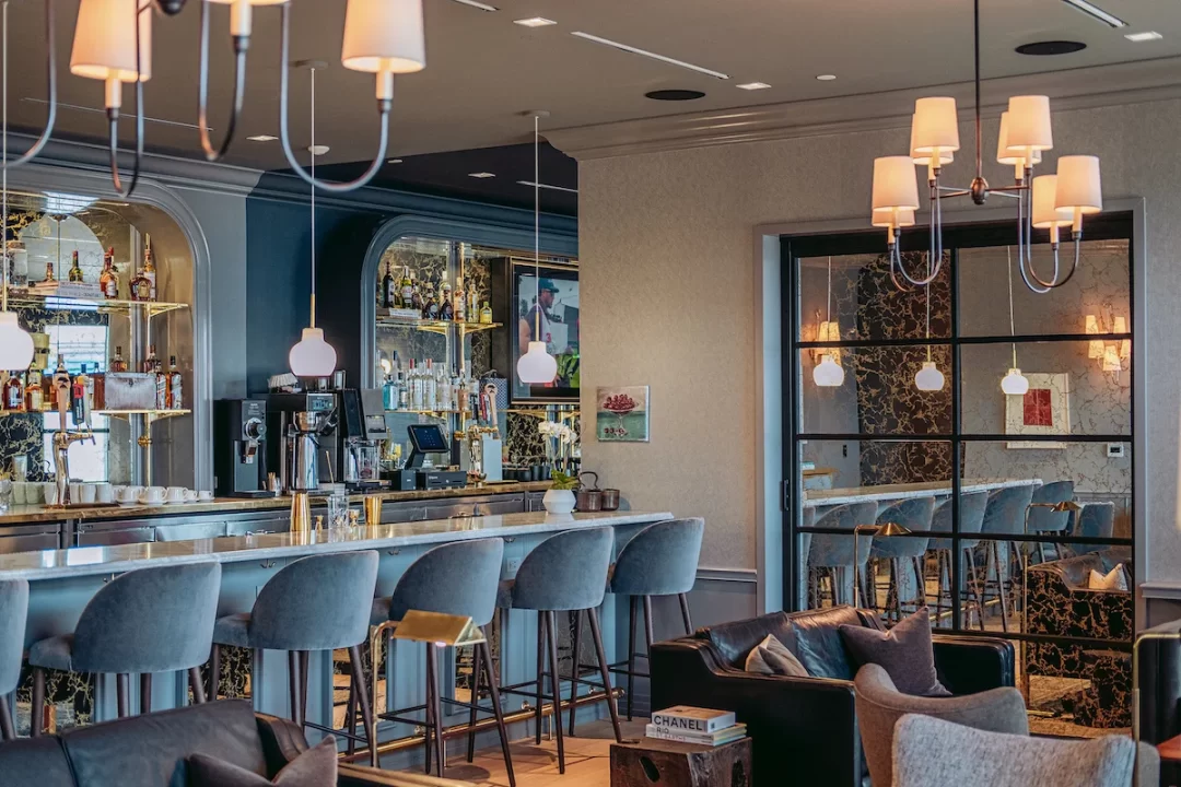 - The Salon is a more social space with a bar, lounge area, and dining room.