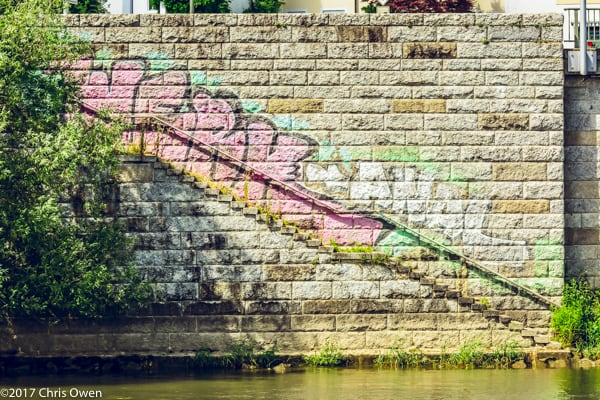 Graffiti artists. We see their work everywhere we travel. Looking beyond the destruction of property, graffiti often expresses opinions for which there is no other outlet. Ranging from a single word to colorful murals, these works of art commonly appear under the cover of darkness. As we travel our graffiti collection has grown; much like the refrigerator magnets of yesteryear. Sailing with Viking River Cruises on a Grand European Tour, we will have over a thousand miles of river and a bunch of river graffiti to share by the time it’s all said and done. Here is a sampling of what we have so far: