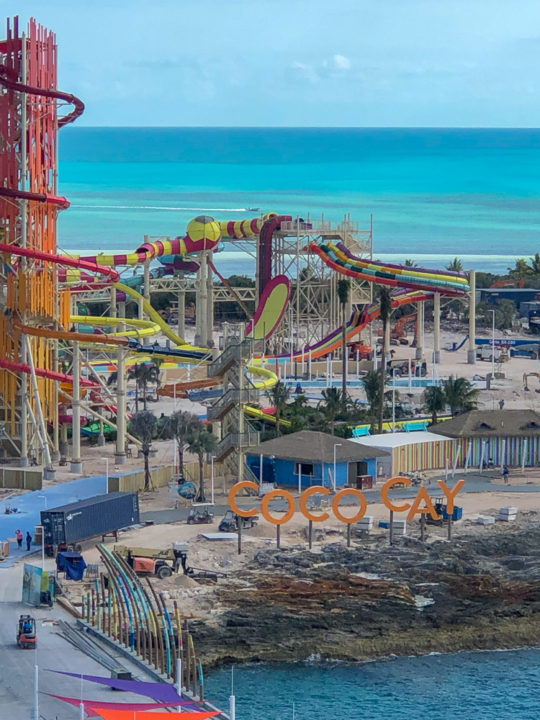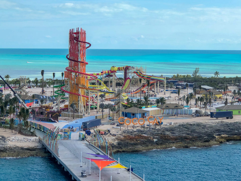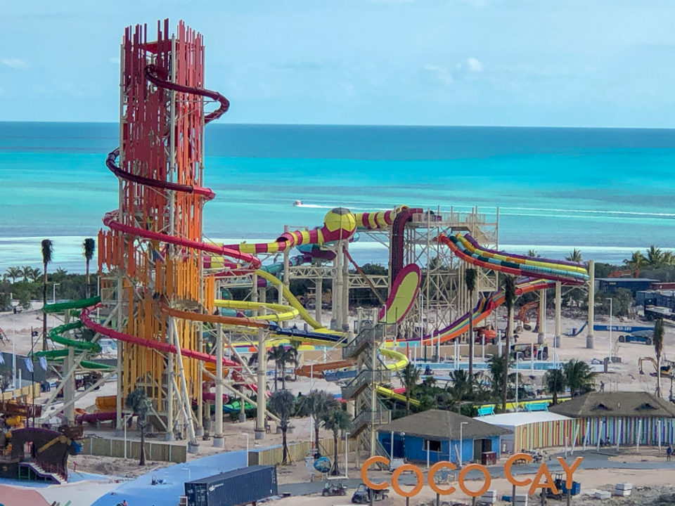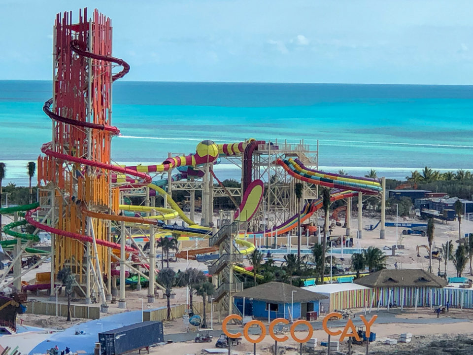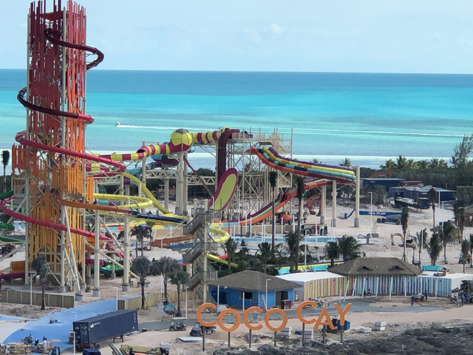 New video from Royal Caribbean highlights the under-construction Thrill Waterpark at the heart of the action on Perfect Day at CocoCay, the cruise line’s newly transformed private island in The Bahamas. Early reports back are good as Royal Caribbean applies big ship top deck attraction magic to land.
