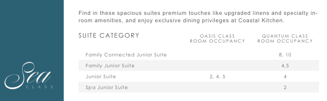 Sea Class- Pamper yourself with luxury bathroom amenities by L’Occitane. Let the ocean gently lull you into the slumber of a lifetime on your luxury pillowtop mattress. And enjoy exclusive dinner access and breathtaking views through floor-to-ceiling windows in our Coastal Kitchen, where Mediterranean and California coastal influences mingle for a culinary experience you won’t soon forget. Benefits include: