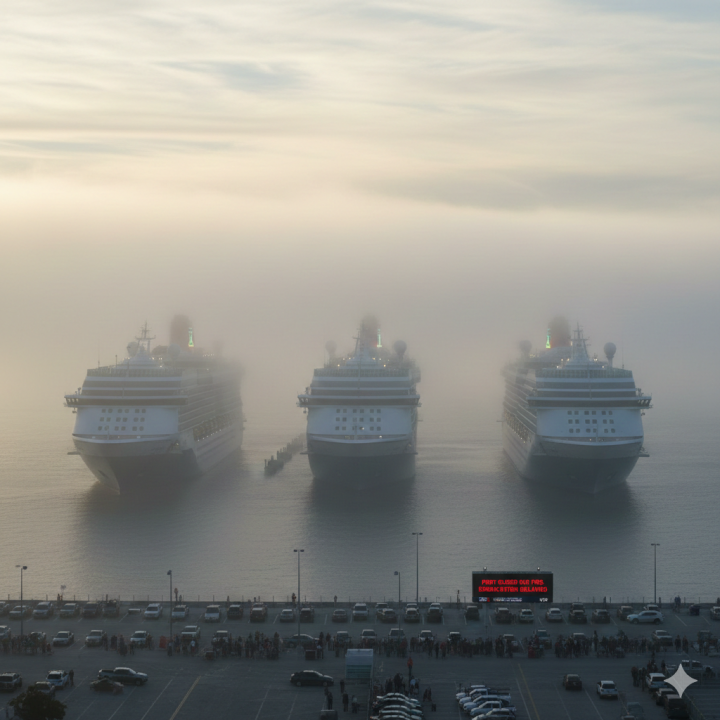 A dense blanket of chilly winter fog unexpectedly enveloped the west coast of Florida on Saturday, December 6, causing a major disruption at the Port of Tampa Bay. Port authorities were forced to temporarily suspend all maritime traffic through the early afternoon due to the low visibility, which made safe navigation impossible. This closure resulted in significant delays for three Royal Caribbean cruise ships—Rhapsody, Enchantment and Grandeur of the Seas—all belonging to the Vision Class fleet. The vessels remained waiting offshore for several hours past their scheduled arrival times, some for more than eight hours, causing anxiety and uncertainty among the passengers.