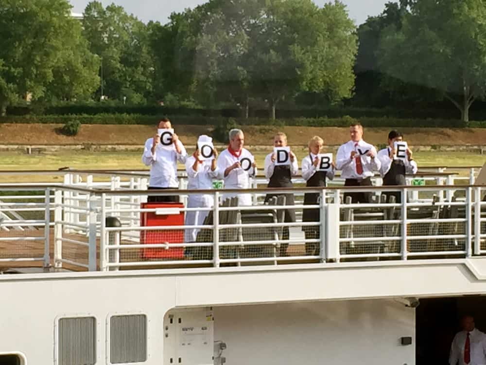 This was the day of our ship swap when we said goodbye to Viking Astrild, driving off on the road to Meissen, on the way to Wittenberg where we would check in on twin sister ship, Viking Beyla. While we did not have a lot of time on Viking Astrild, the crew went far out of their way to make us feel at home, complete with a clever send off message.