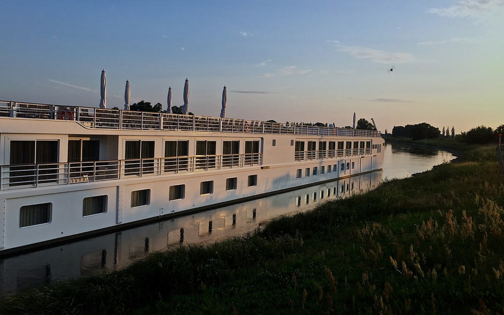 And what a nice view it is of a nearly deserted opposite shoreline in a very quiet location. Bonus: A shoreside biergarten about 12 steps from the ship with a full menu of local fare.