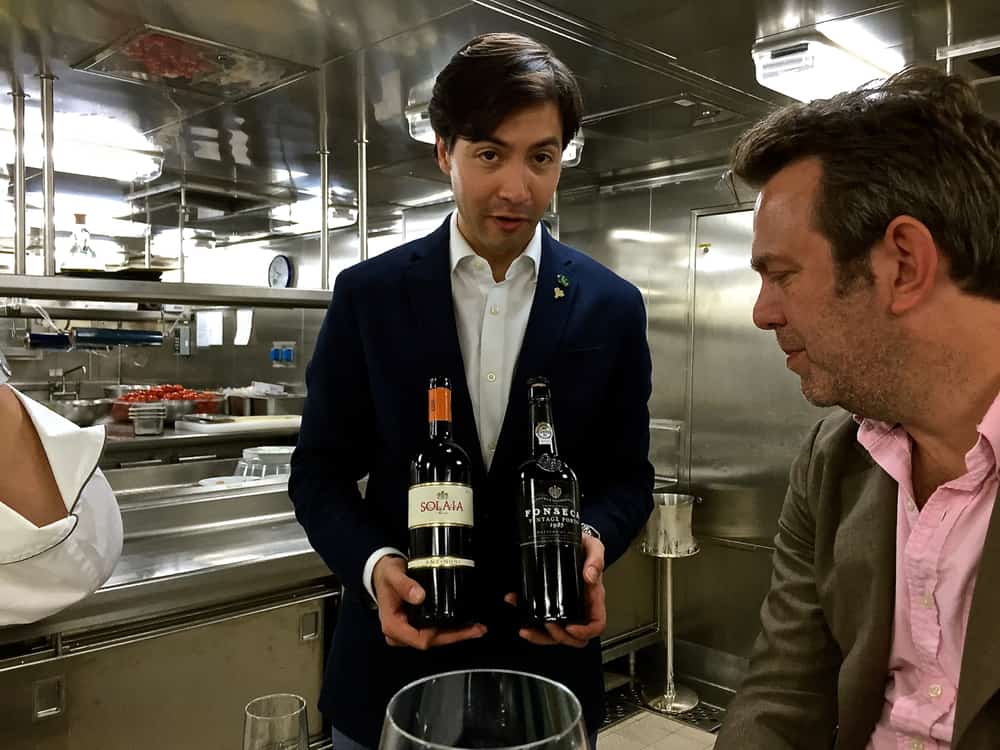 In one of the more unique opportunities afforded me on the Seabourn Food and Wine Cruise, I went into the kitchen for a menu check where the executive chef personally tastes every dish to be sure it is prepared properly. Next he goes out front where the dining room staff is standing by for his description of all items on the menu. Finally sommelier Sebastian pairs all the different dishes with appropriate vintages, providing the information dining room staff needs to make good recommendations to Seabourn Guests.