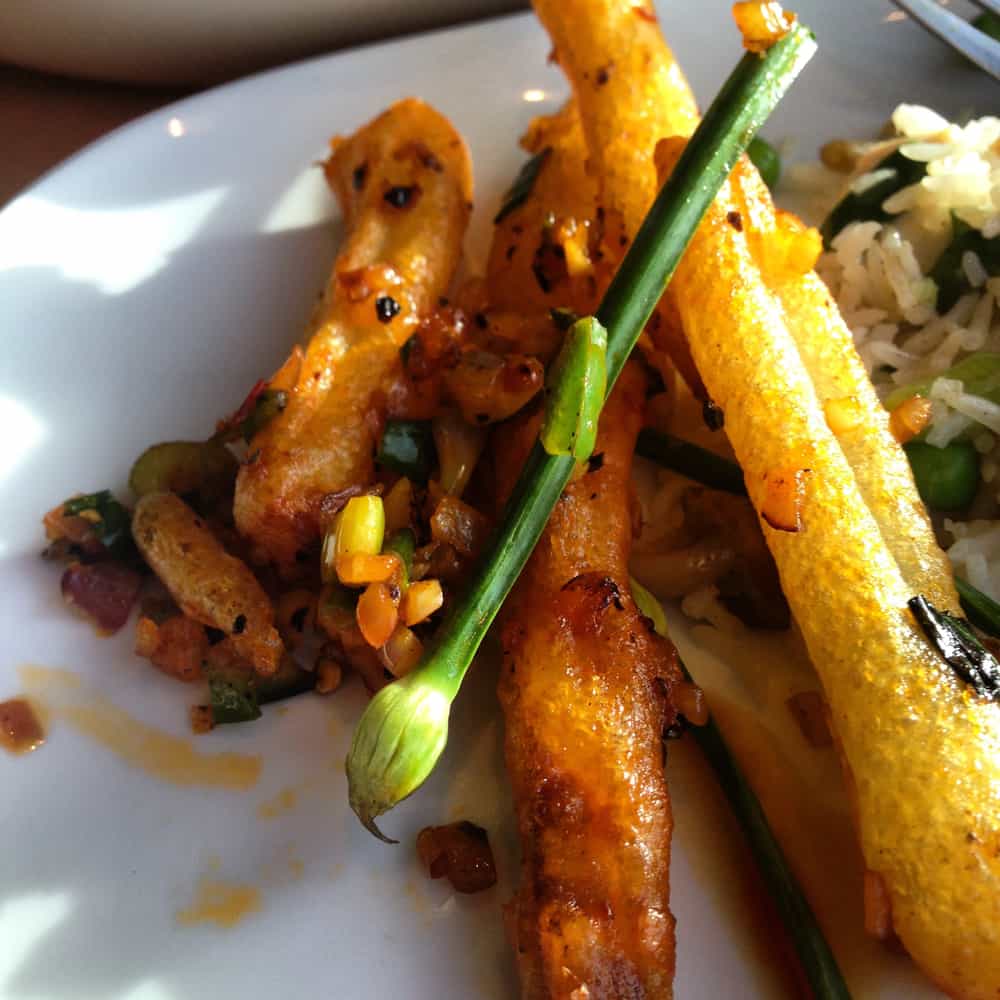 Attentive service keeps things moving along quickly, starting with a selection of sauces and a unique, crispy fried noodle to dip in them. Next comes what diners selected from the appetizer and soup menu ahead of chosen entrée’s and sides followed by dessert. A nice selection of Asian beers is offered in addition to specialty cocktails and teas, all themed appropriately for the venue, priced separately.