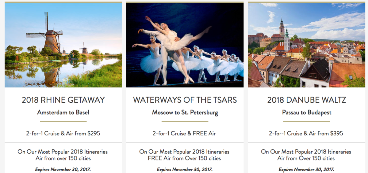 Viking River Cruises has a number of special offers that follow a familiar pricing structure with 2-for-1 savings for all along with discounted (or $0) cruise line airfare arrangements, round trip from over 150 cities.