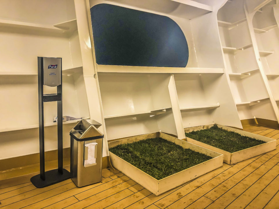 I never really thought about it. Where do service animals go to the bathroom? There were service animals aplenty on our sailing too. Many enjoyed this grassy area I passed by on the wraparound promenade deck of Nieuw Statendam.
