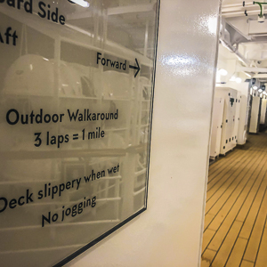 They will have a walking track that runs around the outside of the ship, providing panoramic views of the ocean or places the ship might stop along the way. They will also have other rather low-tech features that don’t get very much attention. Like a place for service dogs to do their business.