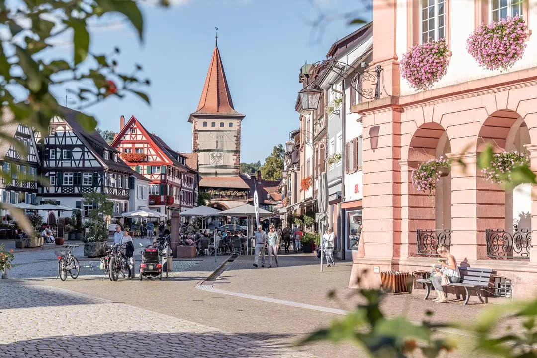 Gengenbach is a picturesque town in the Black Forest, famous for its Town Hall that turns into an Advent calendar every December, and offers a variety of beautiful hiking trails that are easily accessible from the middle of the old town. The trails wind through dense forests, vineyards and hills, offering breathtaking panoramic views. One of the most popular trails is the path to the Jakob Tower, from where you can enjoy a spectacular view of the Kinzig valley. In addition, the Watermill Trail takes hikers past old mills and picturesque streams. Another outstanding route is the Ortenauer Wine Trail that runs through the Ortenau wine region allowing hikers the beauty of the vineyards and places to taste local wines in the wineries along the way.
