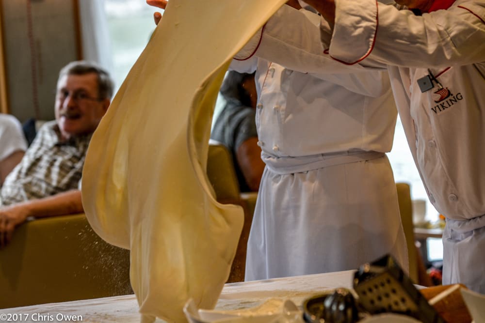 An Apple Strudel making demonstration brought further destination focus. The ship’s Executive Chef and Pastry Chef, along with one of the Viking guests went through the motions of making the Austrian pastry, followed by Austrian Tea Time that also included a variety of cakes and tea.