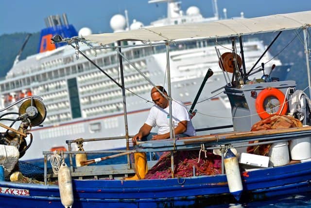 Our tour ashore started with a visit to the mountain village of Panagia. On a walking tour of the village, we strolled though narrow streets and passages, stopping from time to time before continuing on to La Scala beach for a leisurely time soaking up the local flavor. Continuing up the steep mountainside terrain, we stopped for a typical Greek lunch before making our way back to sea level and Europa 2.