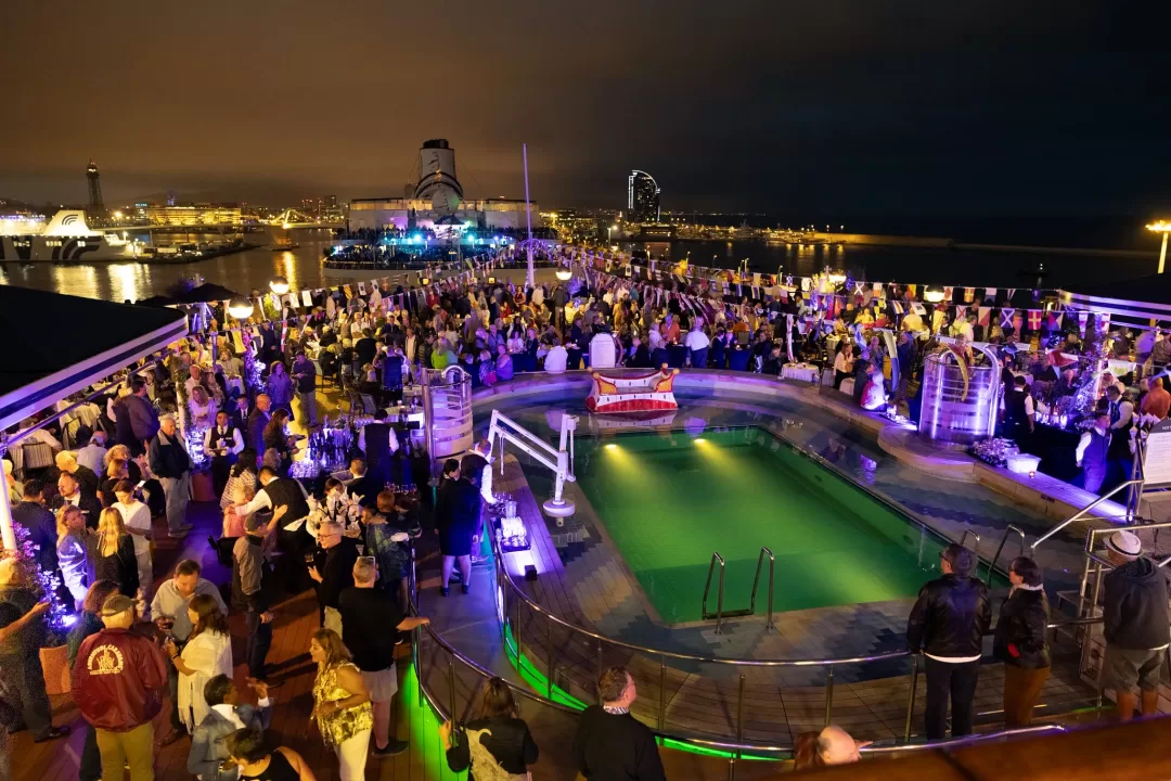 The Zuiderdam, sailing its 124-day Grand World Voyage since January 4, and the Volendam, on its 133-day Grand Voyage: Pole to Pole since January 25, provided guests with a memorable joint experience. Festivities included a shared Spanish-themed afternoon tea aboard Zuiderdam, allowing passengers from both vessels to mingle. In the evening, matching regionally inspired dinners were served in the main dining rooms, showcasing local Spanish flavors. Afterward, guests enjoyed lively “dueling” deck parties on each ship’s aft pool deck.