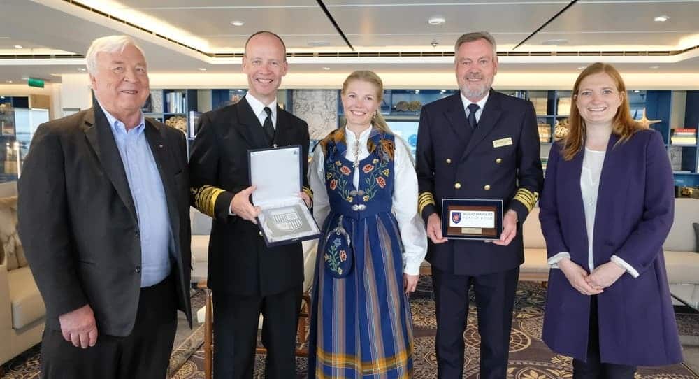During his visit, Hagen and Viking Sea’s captain, Gulleik Svalastog, presented commemorative plaques, guided tours of Viking Sea, and discussed how Viking can help support the tourism industry through its sailings in Norway and its destination-focused approach to cruise itineraries. The participating mayors, who also spoke about their respective tourism initiatives, included: Mayor of Tromsø, Mr. Jarle Aarbakke; Mayor of Nordkapp, Ms. Kristina Sigurdsdottir Hansen; Mayor of Brønnøysund, Mr. Johnny Hanssen; and in Bodø, Mayor Ms. Ida Maria Pinnerod and Port Director, Ingvar Mathisen.