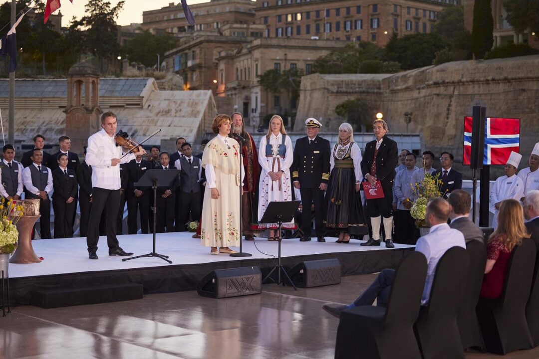A small naming ceremony of the Viking Mars took place today while the ship was docked in Valletta’s Grand Harbour and was attended by friends and business partners of Viking, including Maltese officials. Lady Carnarvon offered her blessing for the ship via video from Highclere Castle, and a bottle of Norwegian aquavit was smashed on the ship’s hull. As all Viking ocean ships are registered in Bergen, Norway, the event paid tribute to Norwegian Constitution Day—May 17—and featured a performance by Norwegian singer Sissel Kyrkjebø, who is widely considered one of the world’s top crossover sopranos and is also the godmother of the Viking Jupiter®. Valletta is significant as the location for the ship’s naming, as Malta was one of the first countries to welcome Viking ships when the company restarted operations in 2021.