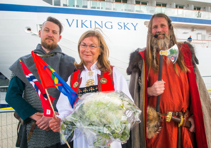 After arriving today in Tromsø, Viking Sky was positioned in the harbor adjacent to a concert stage constructed specifically for the celebration. Viking guests and residents of Tromsø were treated to a public concert, with performances from a variety of Norwegian musicians – including Arctic Philharmonic, Lisa Stokke, Violet Road, Sara Marielle Gaup Beaska and Jørn Hoel. During Viking Sky’s christening ceremony, Marit Barstad, sister of Viking Chairman Torstein Hagen, served as ceremonial godmother and offered a blessing of good fortune and safe sailing for Viking Sky – a naval tradition that dates back thousands of years.