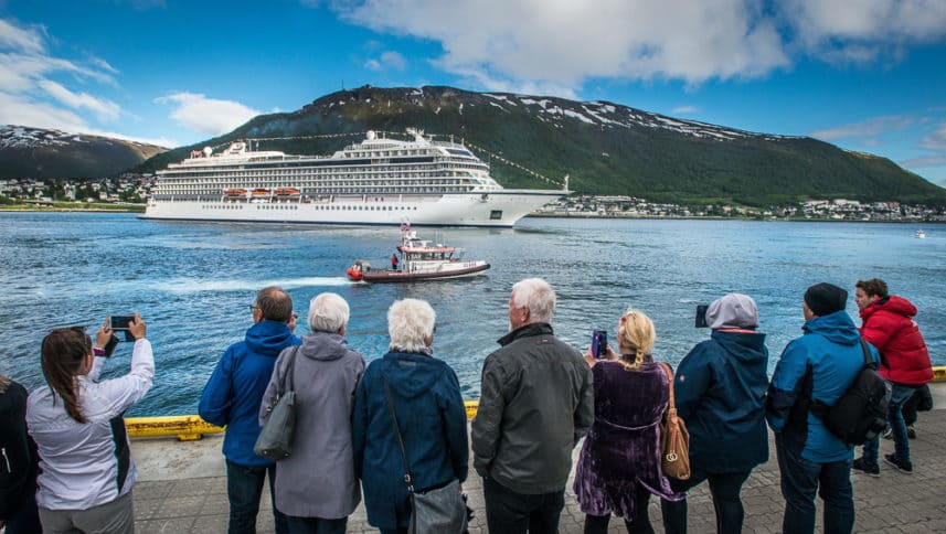[PRESS RELEASE] Viking Cruises® (www.vikingruises.com) today announced that its third ocean ship, Viking Sky®, was officially christened during a public celebration in Tromsø, Norway. Located above the Arctic Circle on Norway’s northwest coast, Tromsø is a popular destination for viewing the northern lights – and a key port of call on Viking’s popular Into the Midnight Sun itinerary, which sails between Bergen and London, allowing guests to explore the northernmost reaches of Scandinavia. Viking’s ocean ships are classified as “small ships” by Cruise Critic, and the 930-guest, 47,800-ton Viking Sky navigated into the Tromsø harbor this morning, where she received a warm welcome with coordinated water cannons from Norwegian redningsskøyten boats, music from local bands and flag-waving Tromsø residents.