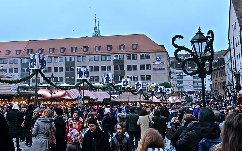 In Nuremberg, we strolled through jam-packed Christmas markets on a Saturday afternoon. Amid centuries old architecture were booths full of shiny tree ornaments, hand-crafted gifts, every kind of holiday treat imaginable and more. It was wall-to-wall people and a crowd of visitors the size of which we would have avoided at all costs at home.