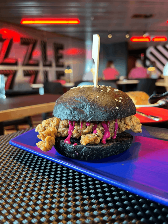 The ship is a food lover’s paradise, with venues designed to delight every palate. Guests can enjoy the sophisticated surf and turf classics at The Wake, savor authentic Italian cuisine at Extra Virgin, or embark on a creative culinary journey at the lab-themed Test Kitchen. For a lively and interactive experience, Gunbae offers a fun Korean barbecue, while Pink Agave serves up authentic Mexican specialties alongside the largest variety of mezcals at sea. The vegetarian-forward menu at Razzle Dazzle and the diverse food hall, The Galley, provide even more wonderful choices.